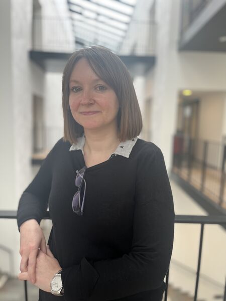 Photo of Lauren McKee taken in 2023 in the AlbaNova building, KTH in Stockholm, Sweden.
