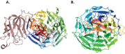 15:14, 9 September 2021 CRO tertiary structure.png (file) 325 KB Figure#. Crystal structure of copper radical oxidases. A. ''Fgr''GalOx (PDB ID 1GOF), Copper ion in orange and B. ''Cgr''AlcOx (PDB ID 5C86), Copper ion in grey . This figure is adapted from [<cite>Yin2015</cite>]. 1