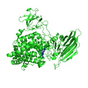 Figure 2 Crystal structures of the substrate complex of the monomeric Atu3025 (PDB: 3AFL) with the substrate in blue.