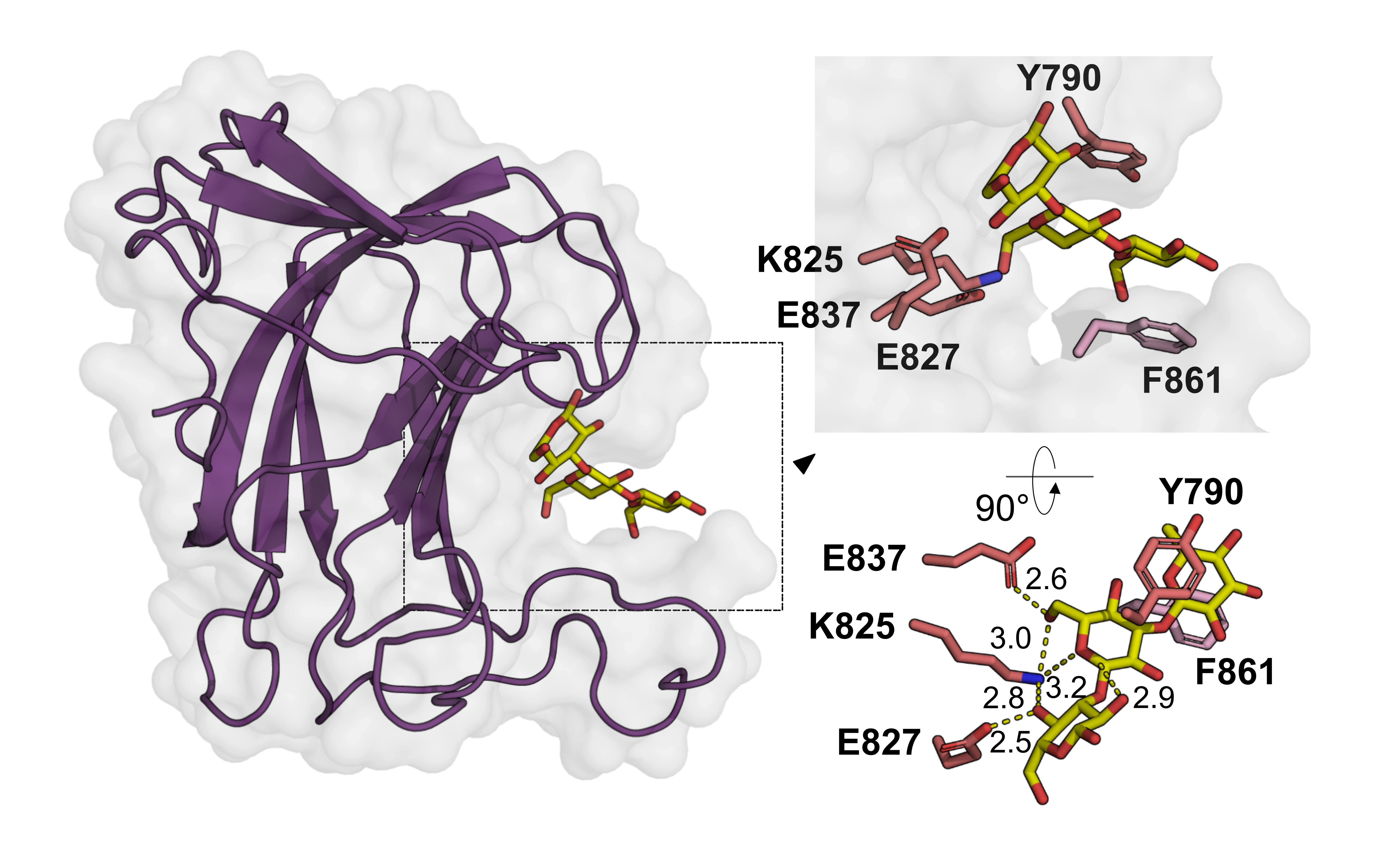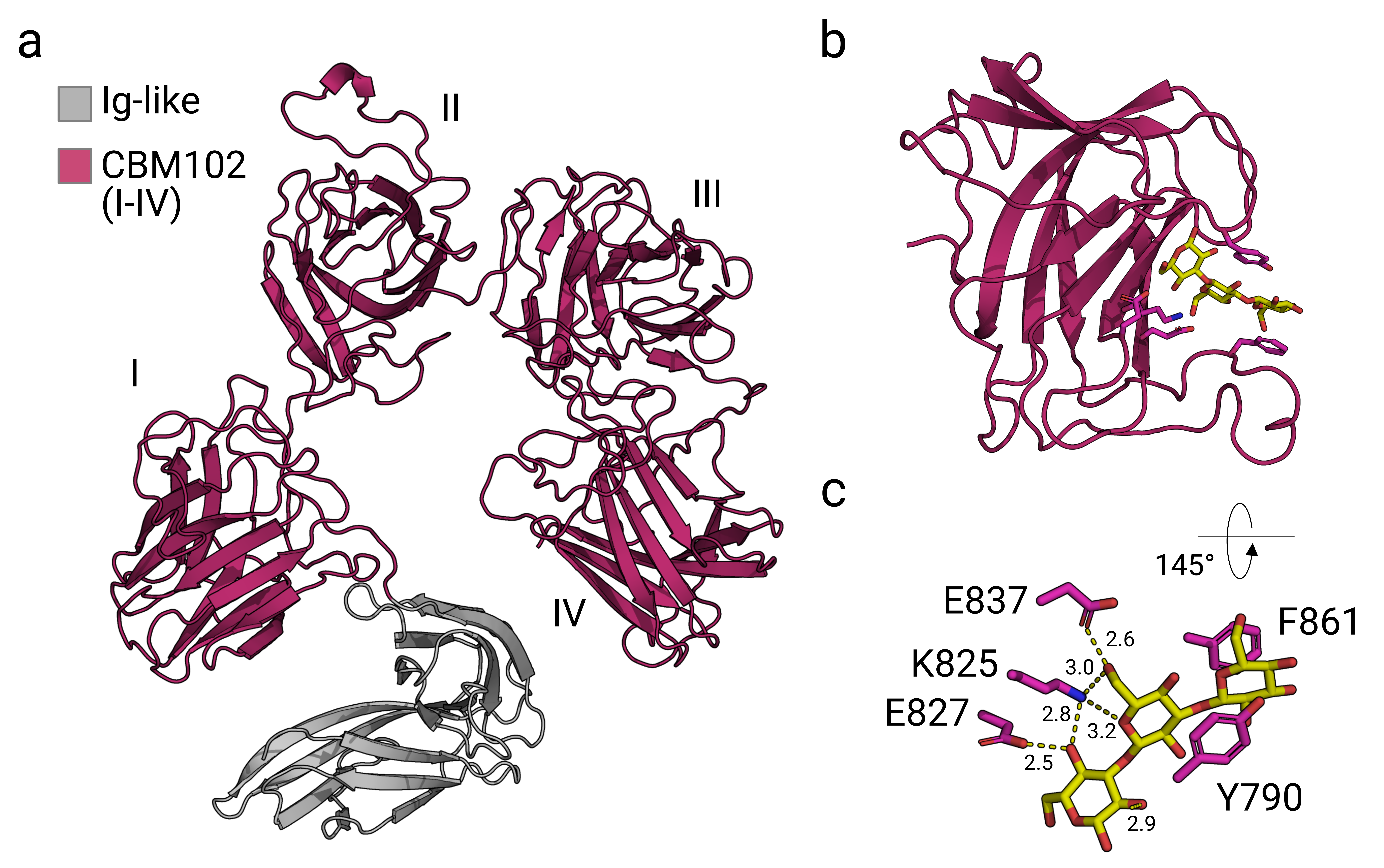 3D crystal structure of the C-terminal CBM102 of the C. forsetii SGBP together with laminaritriose.