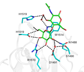 | current | 14:18, 10 April 2019 | 760 × 652 (206 KB) | Ben Pluvinage (talk | contribs) | CBM71-1 binding site. Residues involved in binding LacNAc (green) are shown as cyan sticks and waters as red spheres. Black dashed lines represent hydrogen bonds. |
