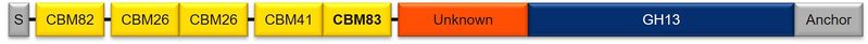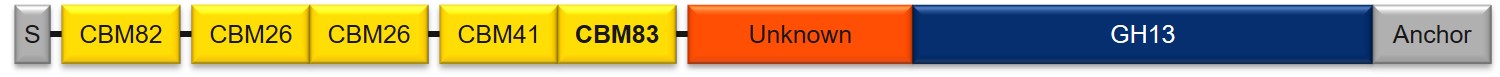 by Darrell Cockburn, shows the domain architecture of E. rectale Amy13K, with the CBM83 label bolded